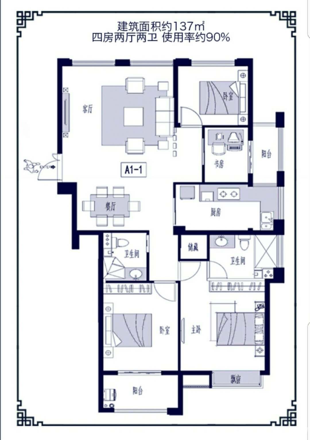 海上明月包出让金证满两年109平142万打包带走 3室2厅2卫 109㎡