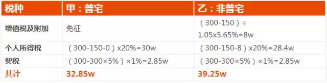 所以除了准备90万首付款(首套房,首付三成)外,甲还需准备32.85万用来缴税,乙则需要多准备39.25万。