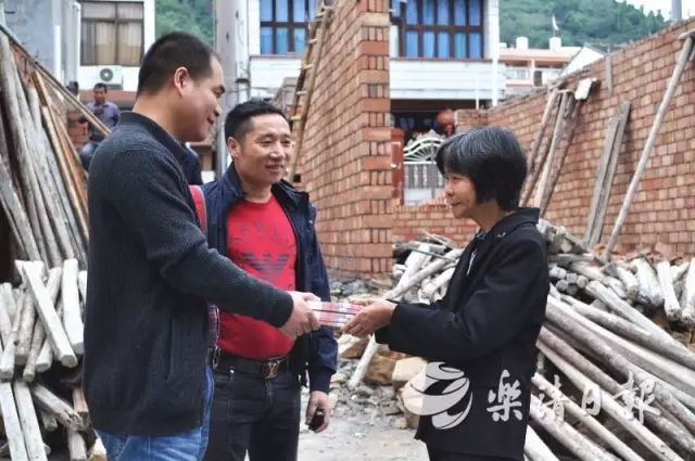 温州“大拆大整”活动中,乐清发放了第一笔危旧房拆建补助。11月10日一早,虹桥镇北城工作片负责人带着镇里预发的5万元拆建补贴款来到上滕村,把沉甸甸的一叠现金交到村民徐传波的妻子陈娇莲手中。